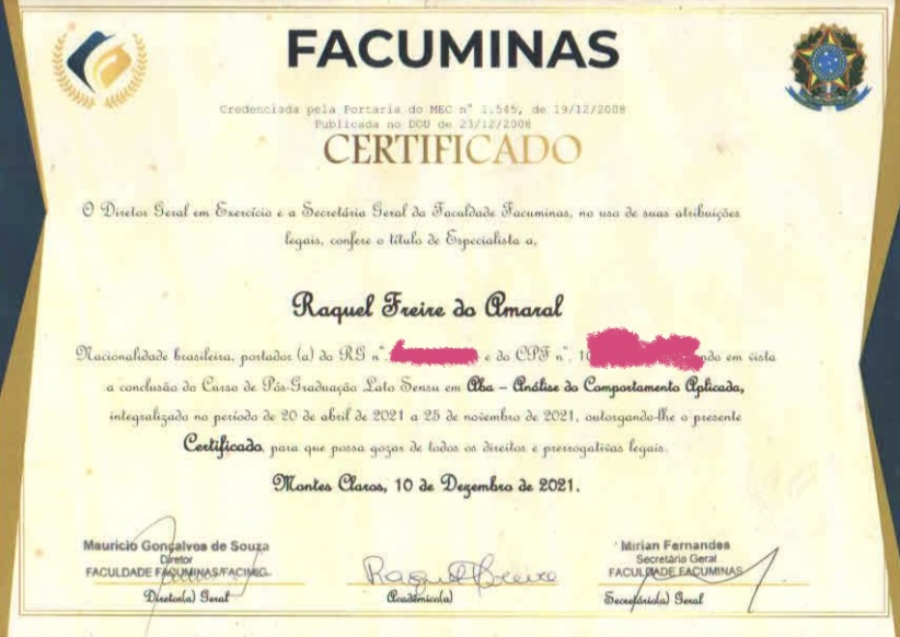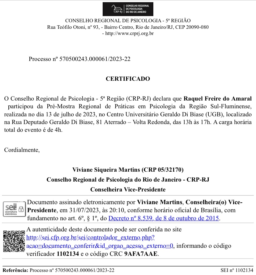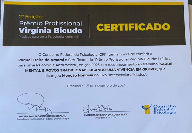 Em especial destaque à Menção Honrosa emitida pelo Conselho Federal de Psicologia: